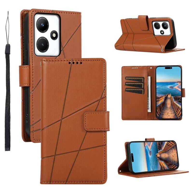 For Infinix Hot 30i PU Genuine Leather Texture Embossed Line Phone Case(Brown)