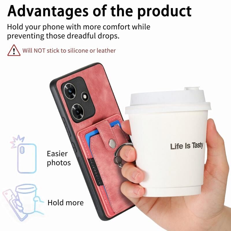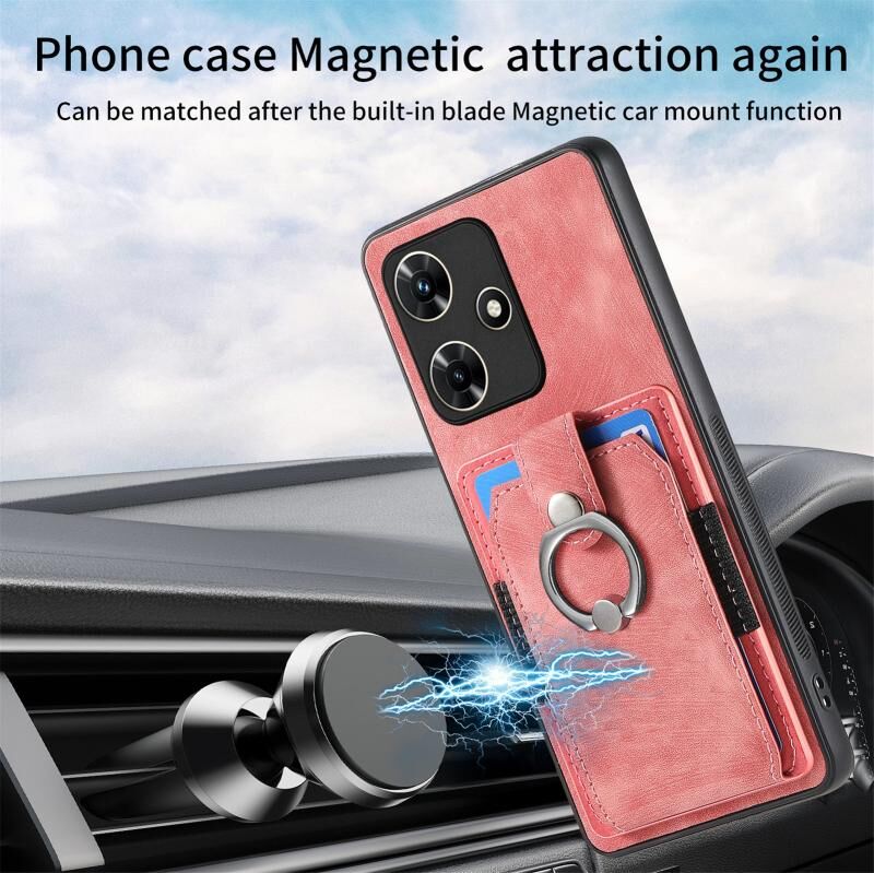 Για Infinix Hot 30i Ρετρό δέρμα-άισθησης δαχτυλίδι κάρτας πορτοφόλι υπόθεση τηλεφώνου (ροζ)