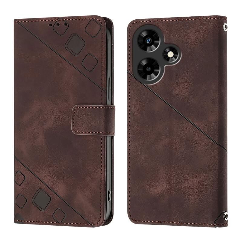 Για Infinix Hot 30i δέρμα αίσθηση ανάγλυφο δέρμα τηλέφωνο υπόθεση (καφέ)