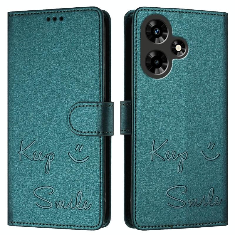 Για Infinix Hot 30i Χαμόγελο ανάγλυφο RFID δερμάτινη θήκη τηλεφώνου (Πράσινο παγώνι)