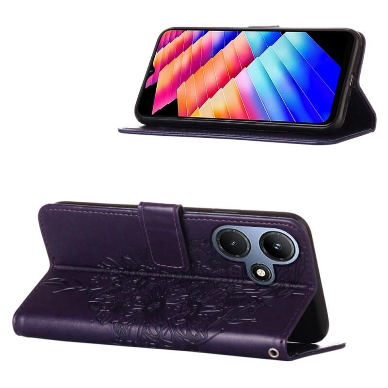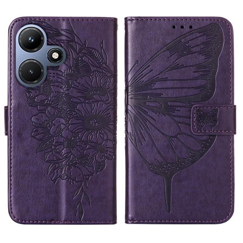 Θήκη τηλεφώνου δερμάτινη με ανάγλυφο σχέδιο πεταλούδας για Infinix Hot 30i / X669 (Μαύρο)