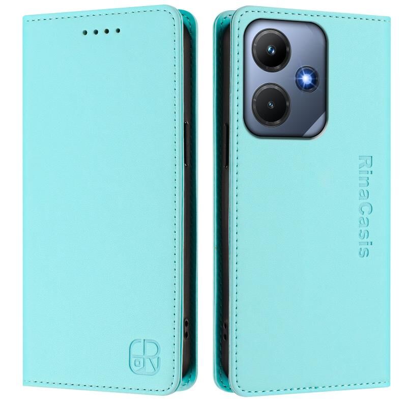Θήκη τηλεφώνου από δέρμα με μαγνητική απορρόφηση και διπλή πτύχωση για Infinix Hot 30i / X669 RC01 (Μέντας Πράσινο)