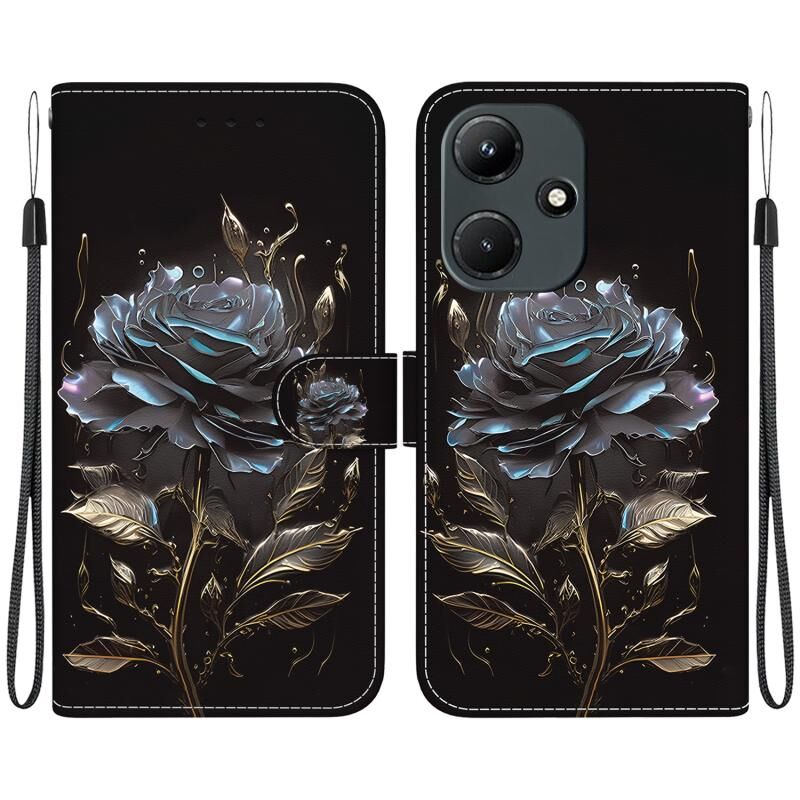 For Infinix Hot 30i X669C Crystal Texture Colored Drawing Leather Phone Case(Black Rose)