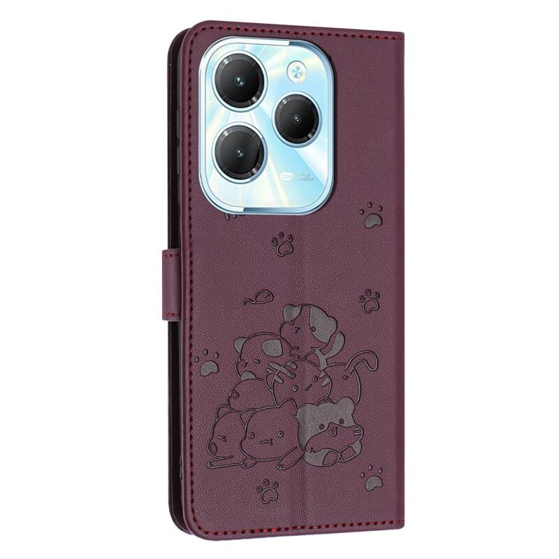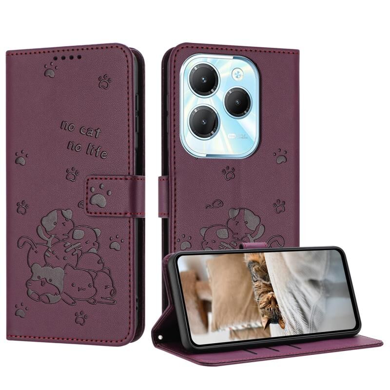 Θήκη δέρματος τηλεφώνου με ανάγλυφο γατάκι και λουρί για Infinix Hot 40 4G / 40 Pro 4G (Μωβ)