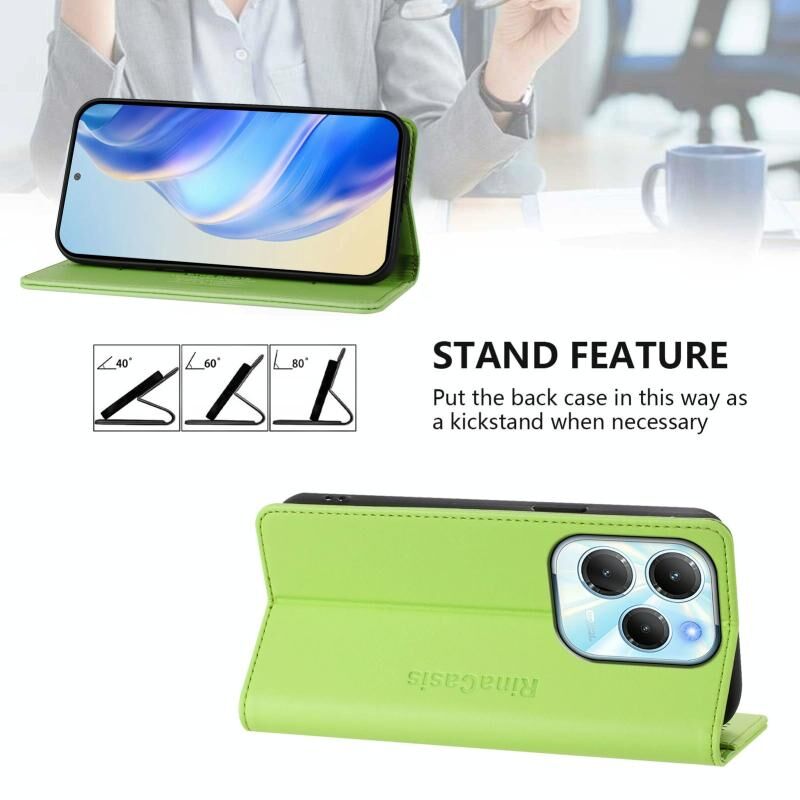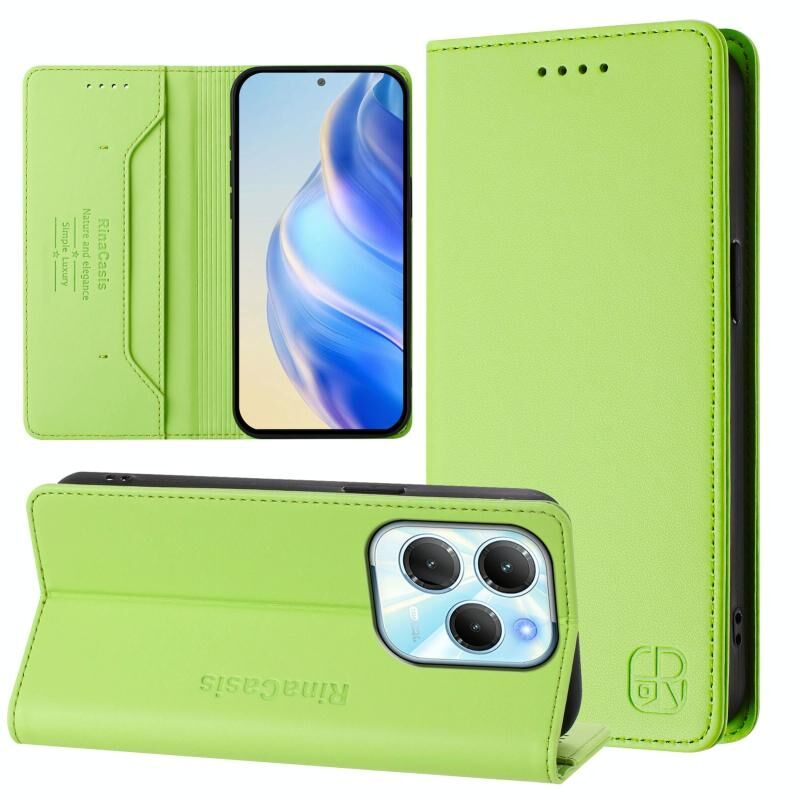 Θήκη τηλεφώνου από δέρμα με μαγνητική απορρόφηση και διπλή πτύχωση για Infinix Hot 40 4G / Hot 40 Play RC01 (Πράσινο του γρασιδιού)
