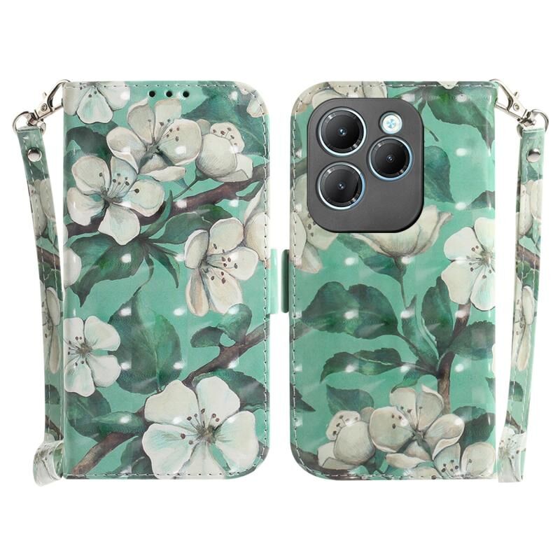 Θήκη τηλεφώνου δερμάτινη, οριζόντια, αναδιπλούμενη, με έγχρωμο 3D σχέδιο (υδατογραφία λουλουδιών) για Infinix Hot 40 / Hot 40 Pro.