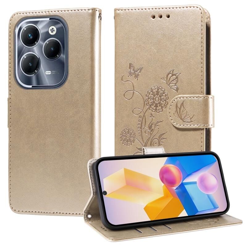Θήκη τηλεφώνου από δέρμα με ανάγλυφα λουλούδια πεταλούδας για Infinix Hot 40 / Hot 40 Pro (Μωβ)
