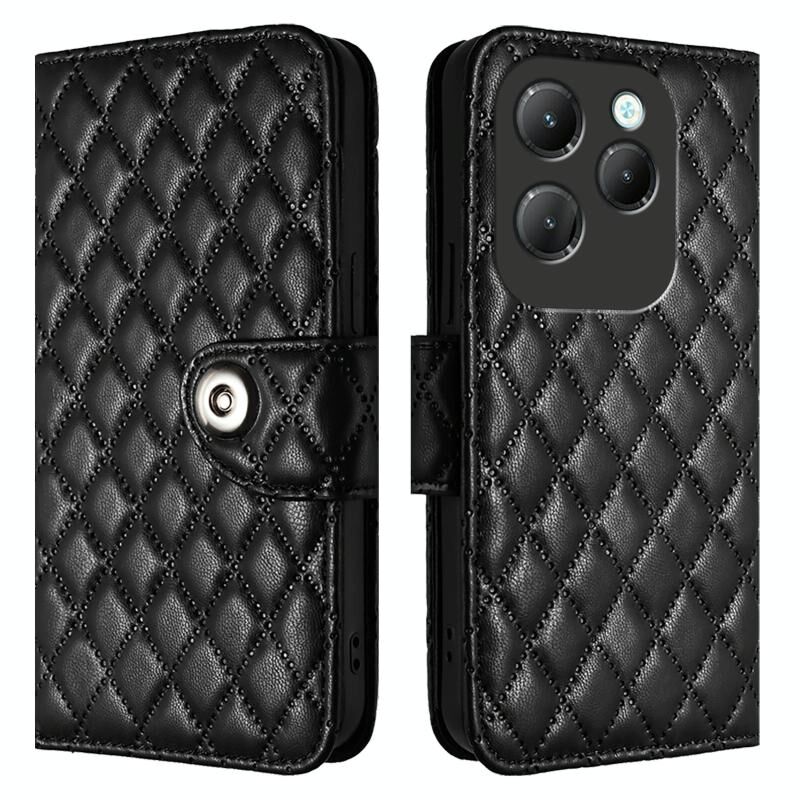 Για το Infinix Hot 40 / Hot 40 Pro Rhombic Texture Flip δερμάτινη θήκη τηλεφώνου με κορδόνι (μαύρο)