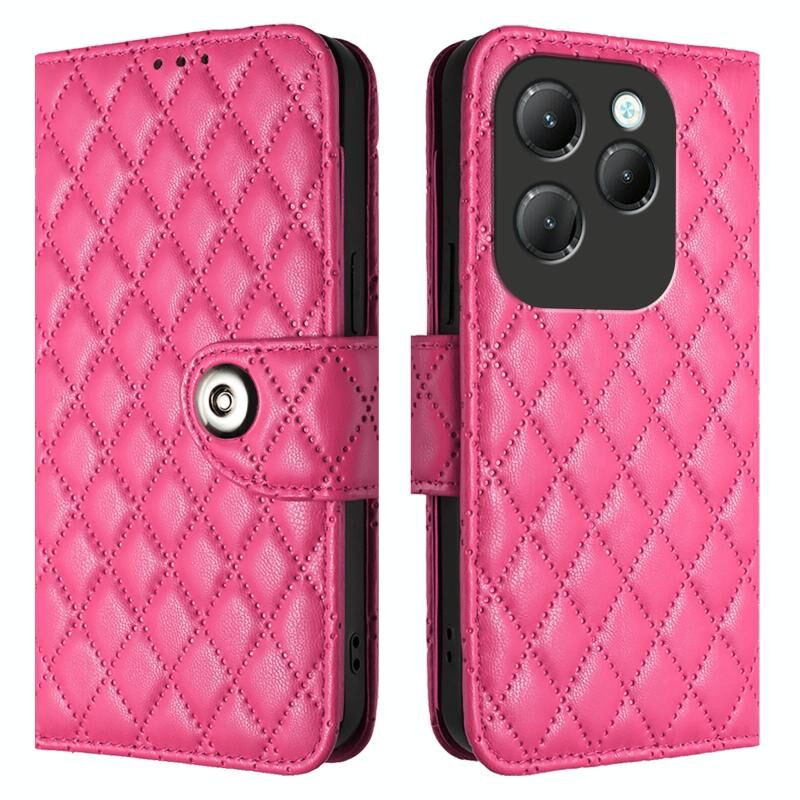 Για το Infinix Hot 40 / Hot 40 Pro Rhombic Texture Flip δερμάτινη θήκη τηλεφώνου με κορδόνι (Rose Red)