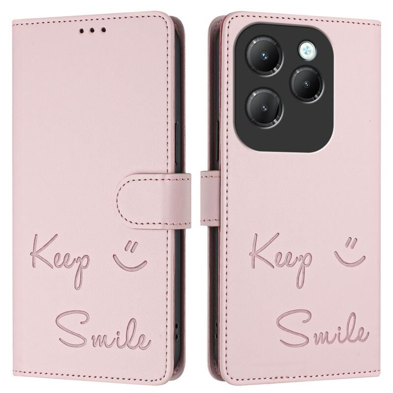 Για Infinix Hot 40 / Hot 40 Pro Smile ανάγλυφο RFID δερμάτινη θήκη τηλεφώνου (ροζ)