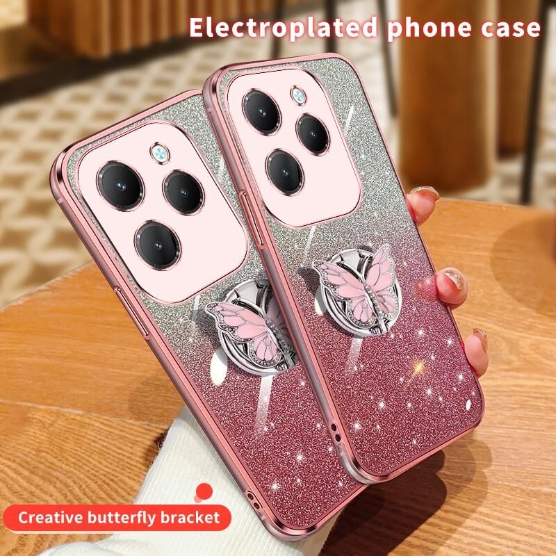Για Infinix Hot 40 επιμεταλλωμένο διαβάθμιση Glitter πεταλούδα κάτοχος TPU τηλέφωνο υπόθεση (μαύρο)