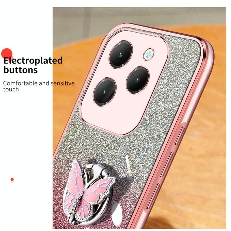 Για Infinix Hot 40 επιμεταλλωμένο διαβάθμιση Glitter πεταλούδα κάτοχος TPU τηλέφωνο υπόθεση (Sierra Blue)