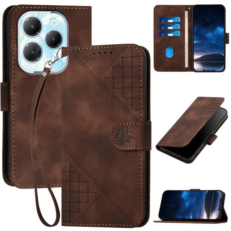 Θήκη τηλεφώνου δερμάτινη με ανάγλυφο σχέδιο Grid Butterfly για Infinix Hot 40 Pro 4G με κορδόνι (Καφέ)