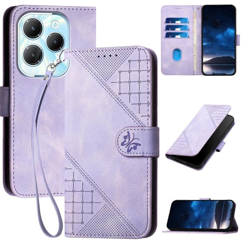 Θήκη τηλεφώνου δερμάτινη με ανάγλυφο σχέδιο Grid Butterfly για Infinix Hot 40 Pro 4G με κορδόνι (Σκούρο Μπλε)