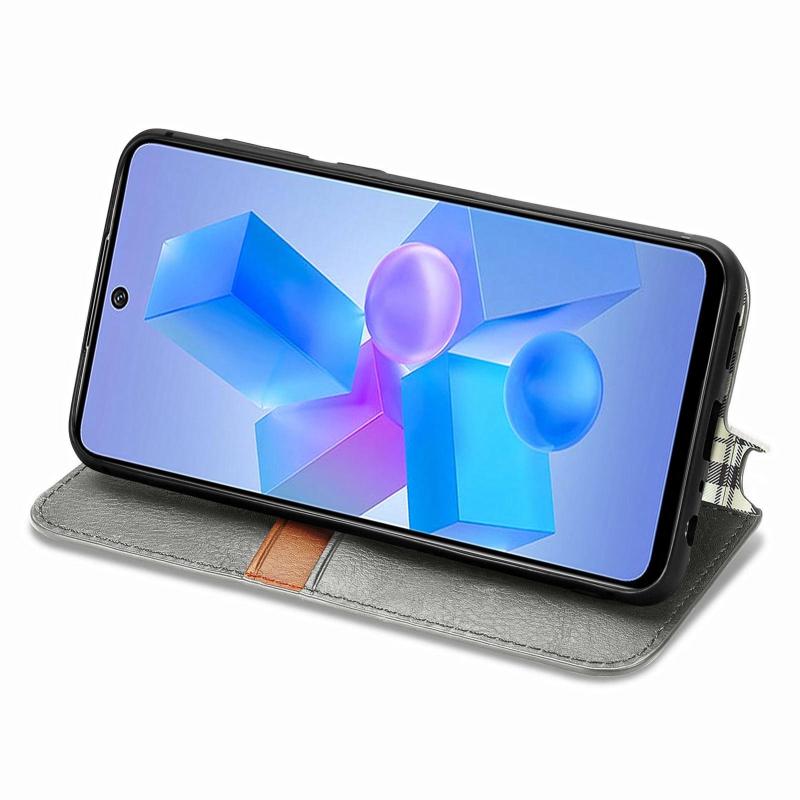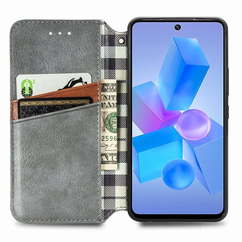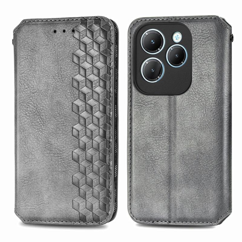 For Infinix Hot 40 Pro Cubic Grid Pressed Magnetic Leather Phone Case(Grey)