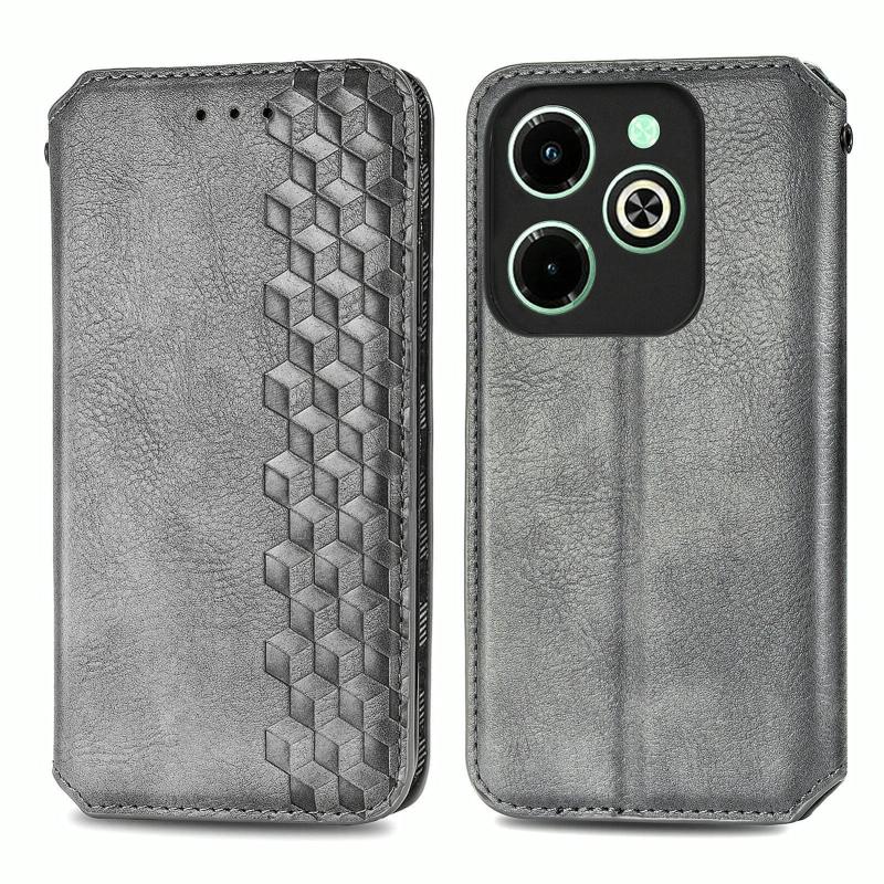 For Infinix Hot 40i Cubic Grid Pressed Magnetic Leather Phone Case(Grey)