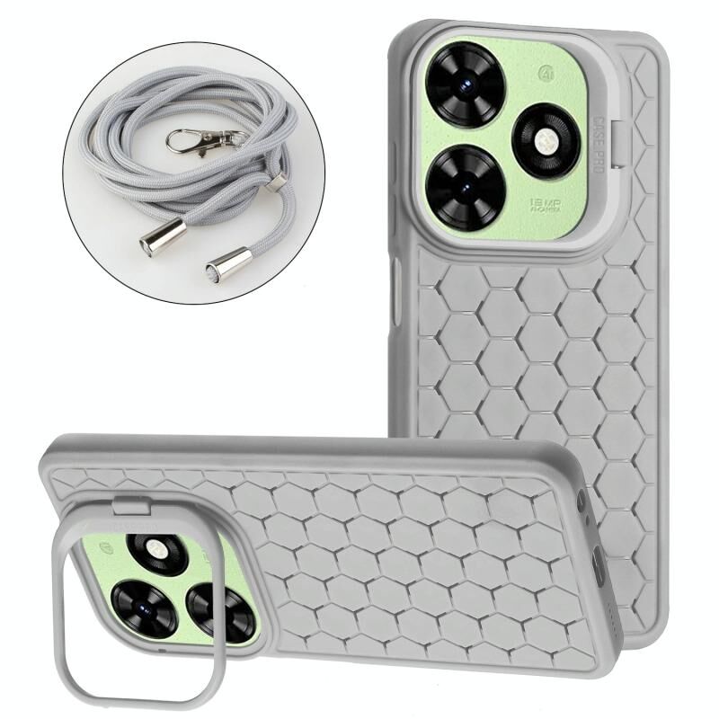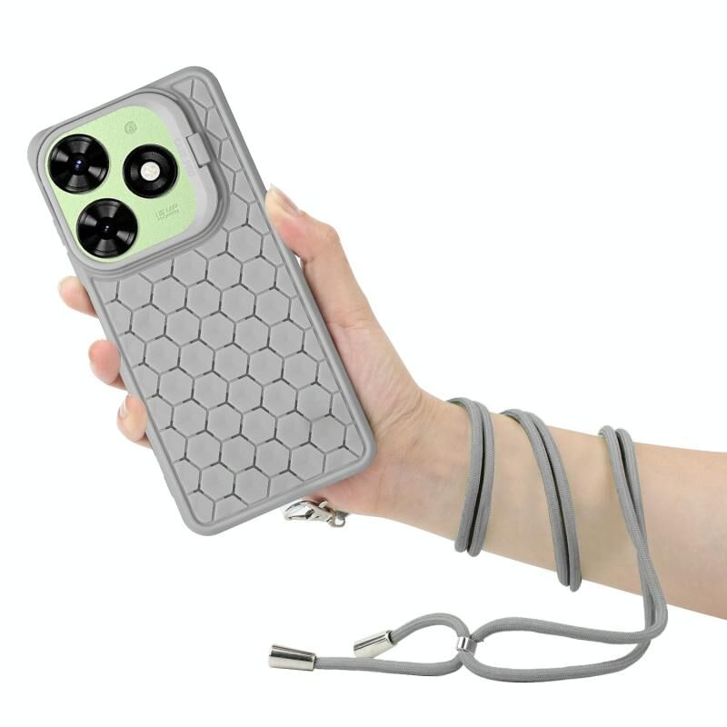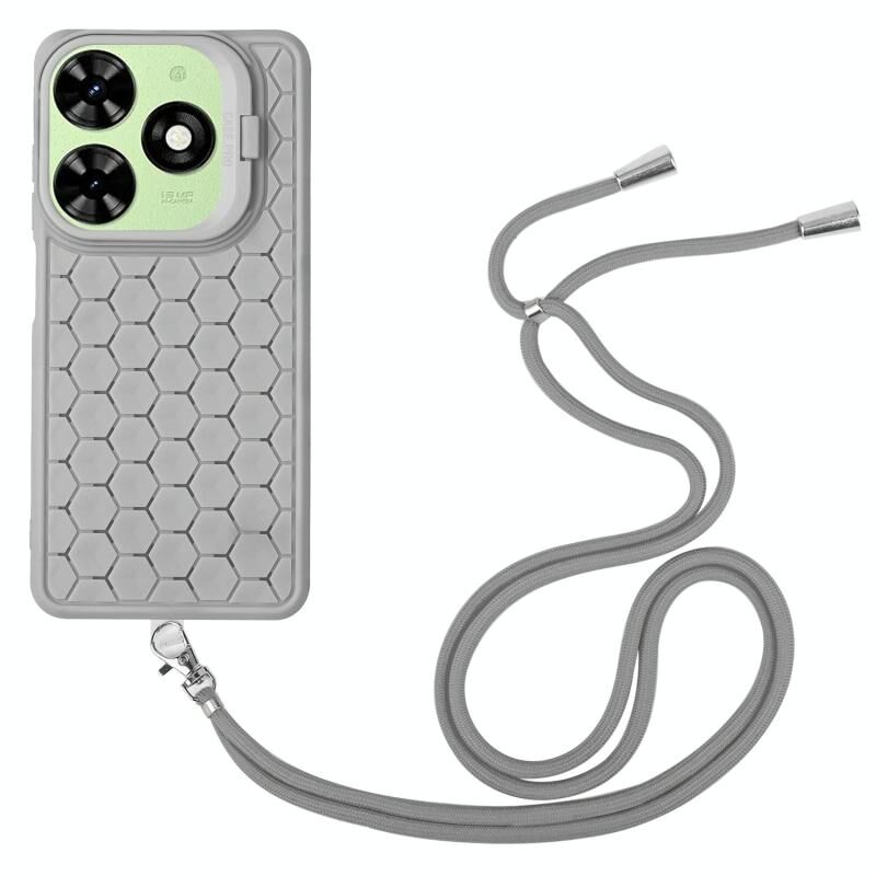 Για Infinix Hot 40i κηρήθρα ακτινοβολία κάτοχος TPU τηλέφωνο υπόθεση με κορδόνι (γκρι)