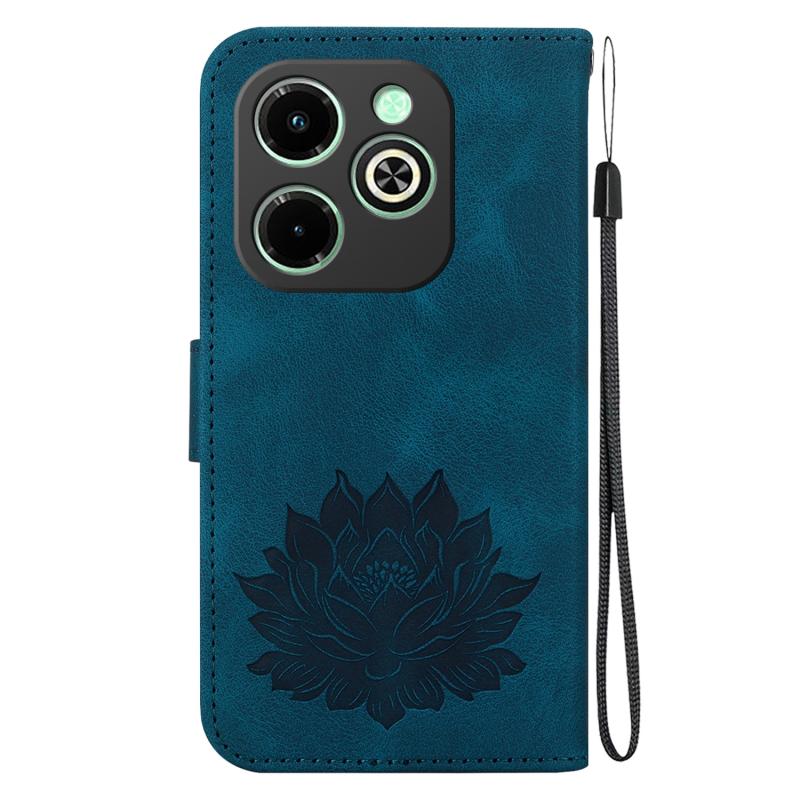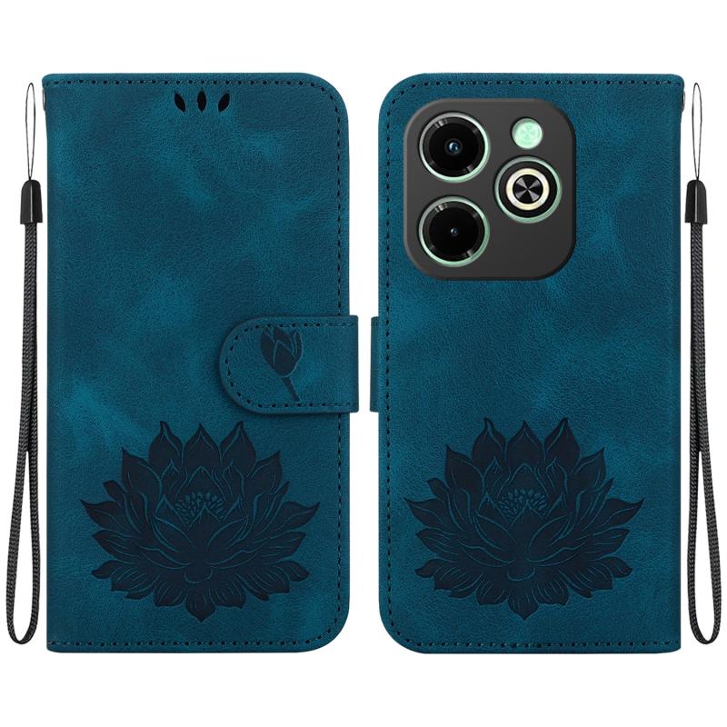 For Infinix Hot 40i Lotus Embossed Leather Phone Case(Dark Blue)