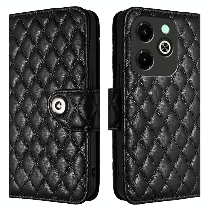 Για το Infinix Hot 40i Rhombic Texture Flip δερμάτινη θήκη τηλεφώνου με κορδόνι (μαύρο)