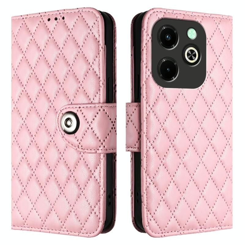 Για το Infinix Hot 40i Rhombic Texture Flip δερμάτινη θήκη τηλεφώνου με κορδόνι (ροζ)