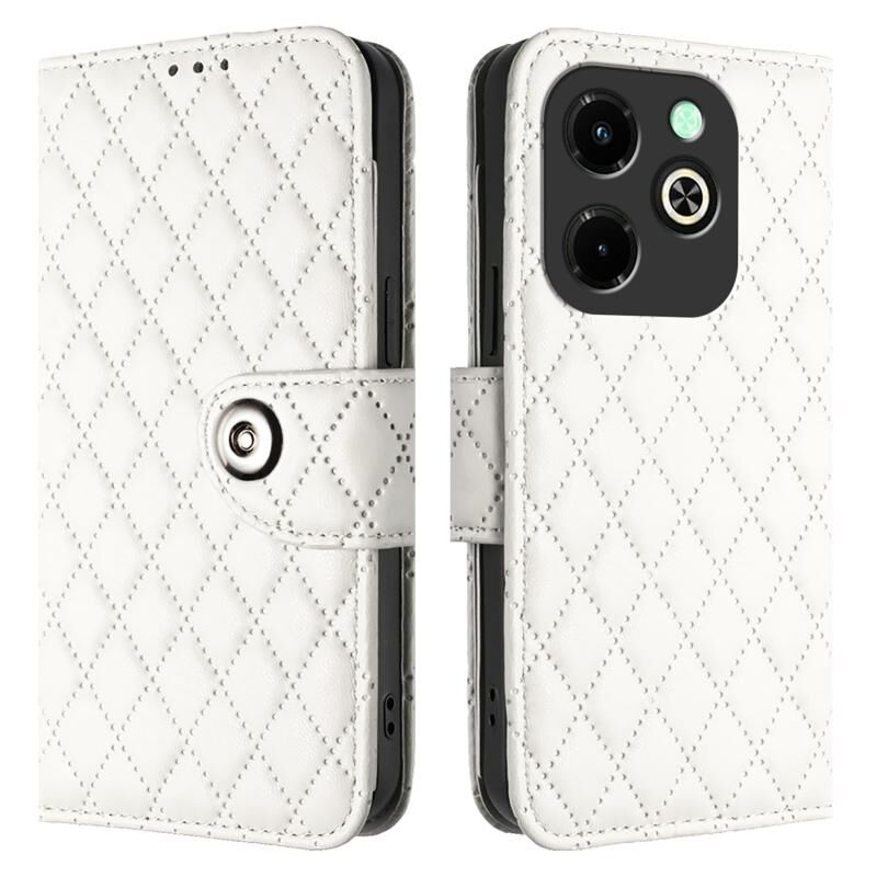 Για το Infinix Hot 40i Rhombic Texture Flip δερμάτινη θήκη τηλεφώνου με κορδόνι (λευκό)