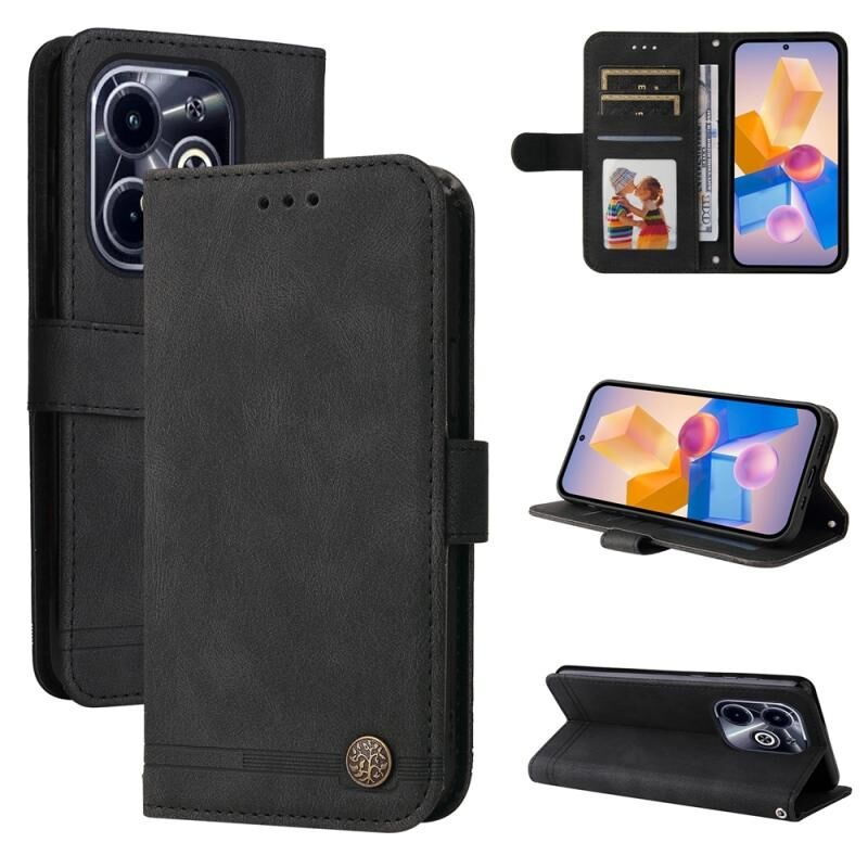 Για Infinix Hot 40i δέρμα αίσθηση ζωής δέντρο μεταλλικό κουμπί δέρμα τηλέφωνο υπόθεση (μαύρο)