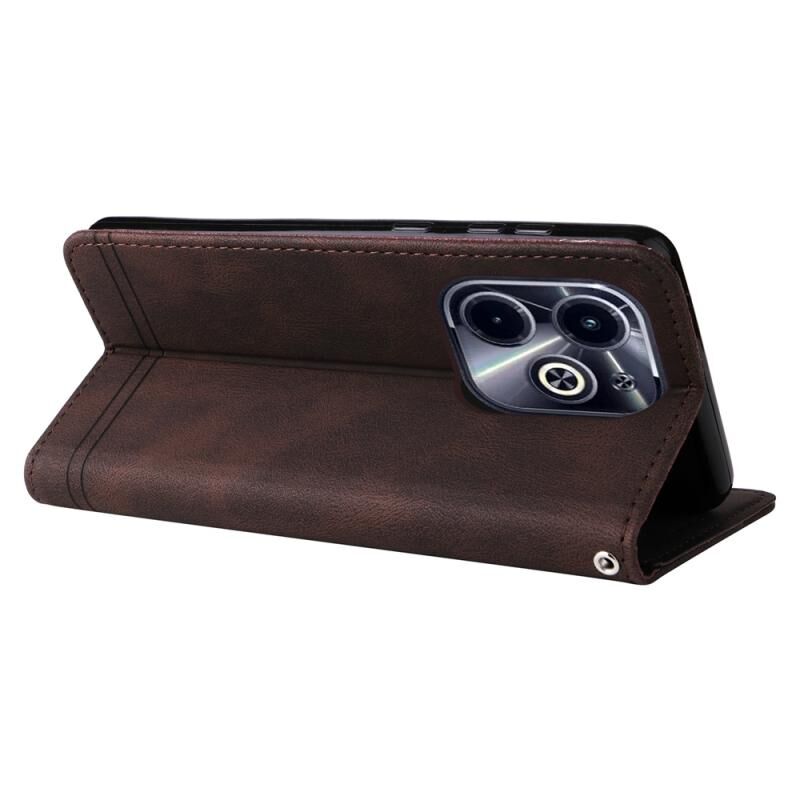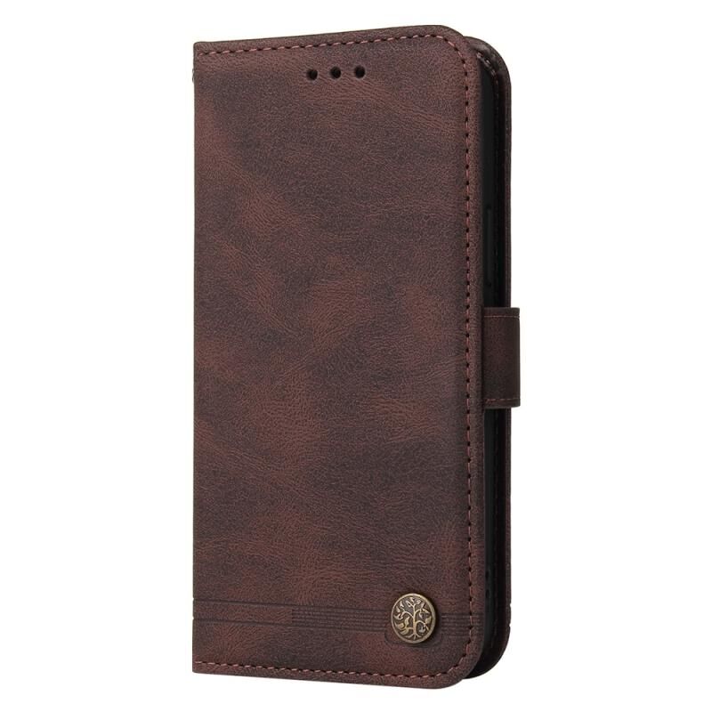Για το Infinix Hot 40i δέρμα αίσθηση ζωής δέντρο μεταλλικό κουμπί δερμάτινη θήκη τηλεφώνου (καφέ)