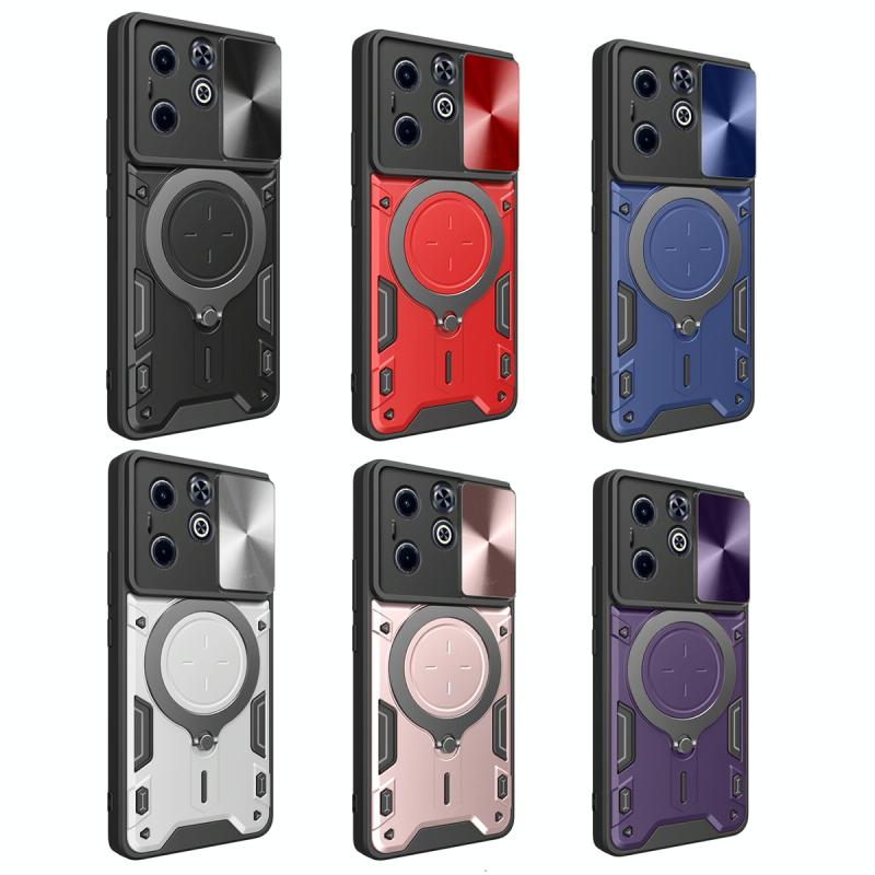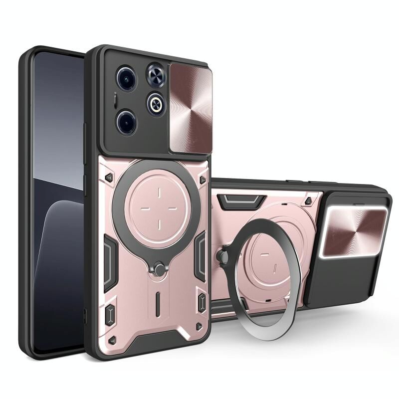 Θήκη τηλεφώνου με υφή CD, συρόμενο προστατευτικό κάμερας και μαγνητική βάση για Infinix Hot 40i / Smart 8 (Ροζ)