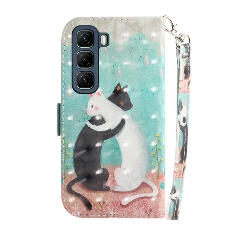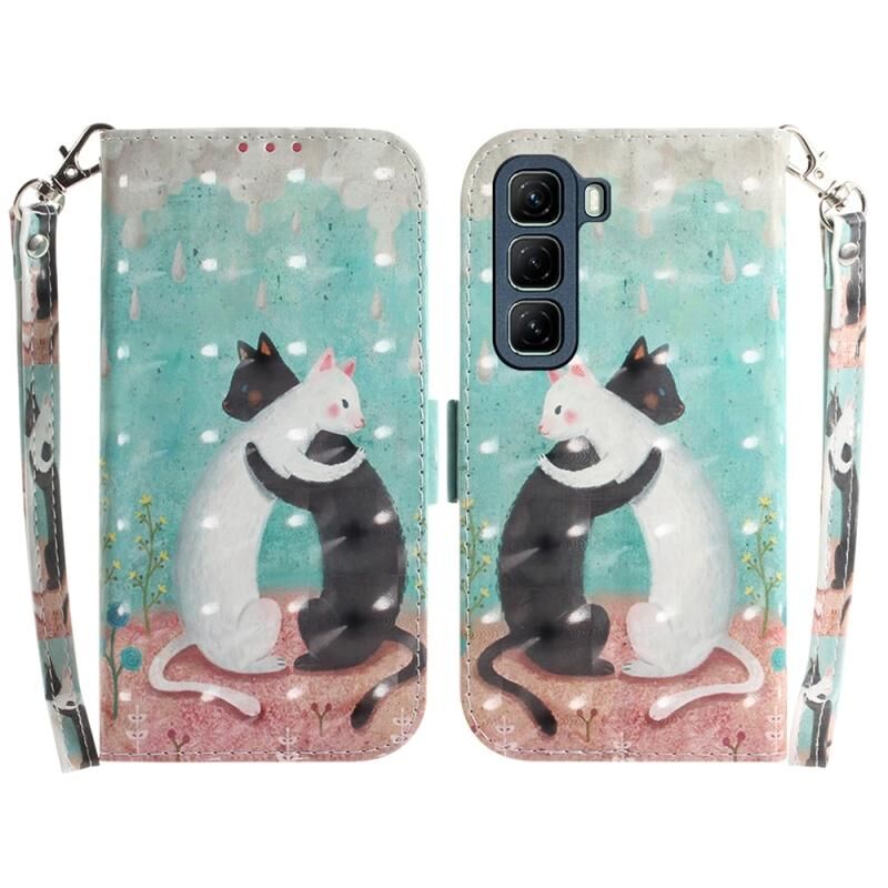 Θήκη τηλεφώνου δερμάτινη, οριζόντια, αναδιπλούμενη, με τρισδιάστατο χρωματιστό σχέδιο για Infinix Hot 50 4G (Μαύρη Λευκή Γάτα)
