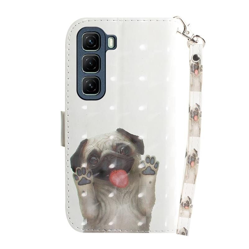 Θήκη τηλεφώνου δερμάτινη, οριζόντια, αναδιπλούμενη, με τρισδιάστατο χρωματιστό σχέδιο για Infinix Hot 50 4G (Pug)