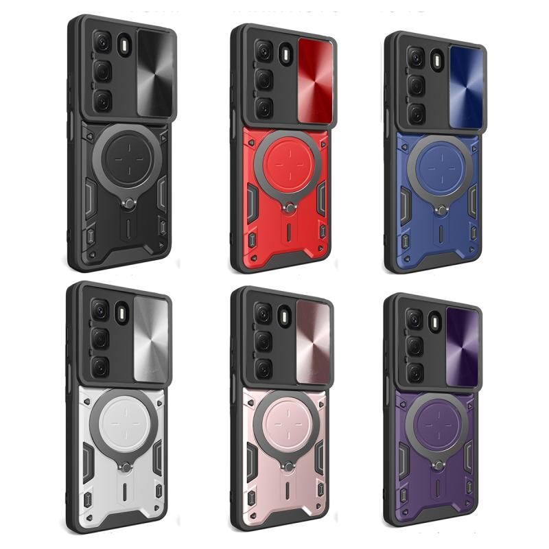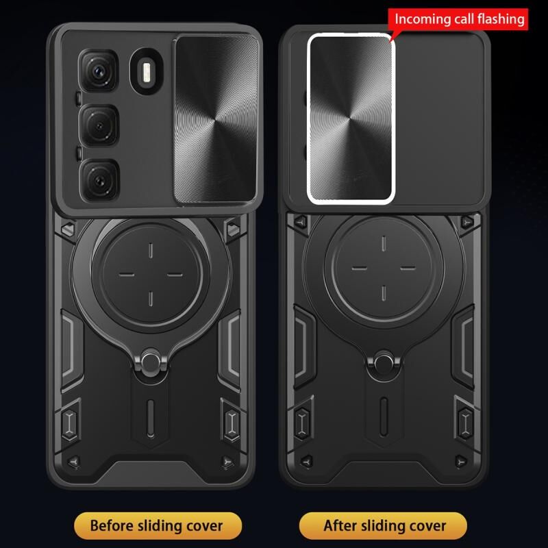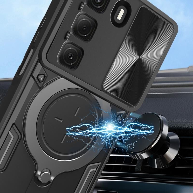 Θήκη τηλεφώνου για Infinix Hot 50 4G με υφή CD, συρόμενο προστατευτικό κάμερας και μαγνητική βάση (Μαύρο)