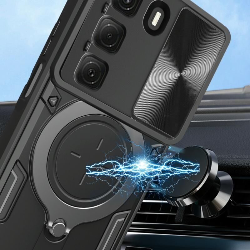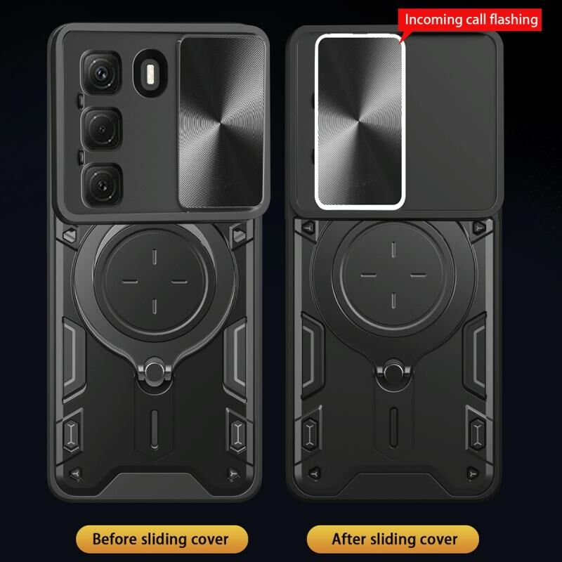 Θήκη τηλεφώνου για Infinix Hot 50 4G με υφή CD, συρόμενο προστατευτικό κάμερας Camshield και μαγνητική βάση (Ροζ)