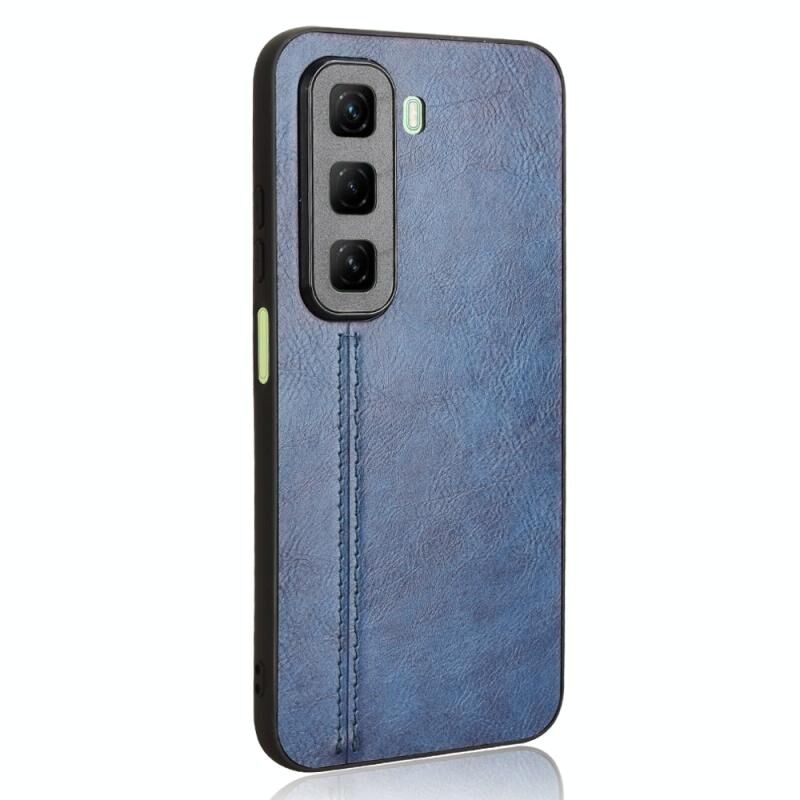 Για Infinix Hot 50 4G αγελάδα μοτίβο ραπτικής κάρτα τσάντα υπόθεση τηλεφώνου (μπλε)