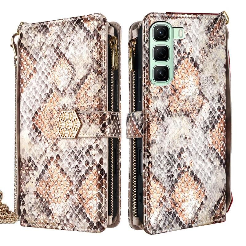 For Infinix Hot 50 4G Crossbody Handle Snake Texture Leather Phone Case(White)