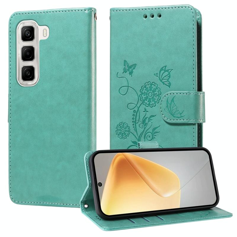 For Infinix Hot 50 4G Embossed Butterfly Flowers Leather Phone Case(Green)