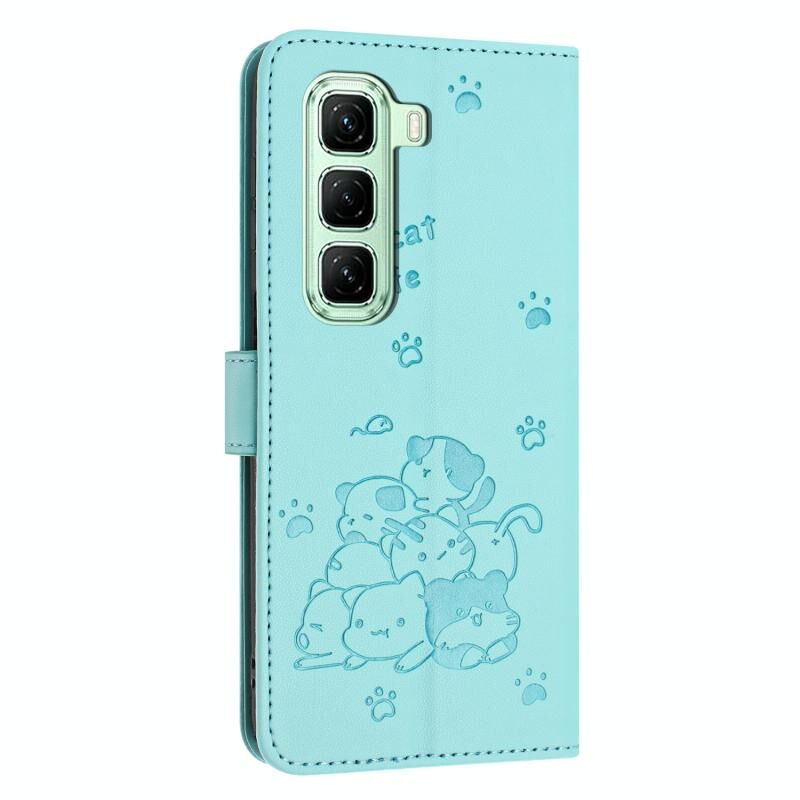 Θήκη δερμάτινη για Infinix Hot 50 4G με ανάγλυφο γατάκι και κορδόνι (Μωβ)