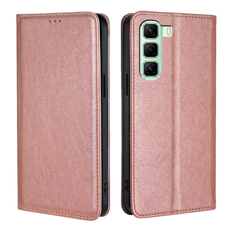 Για Infinix Hot 50 4G Gloss Oil Solid Color μαγνητική δερμάτινη θήκη τηλεφώνου (Rose Gold)