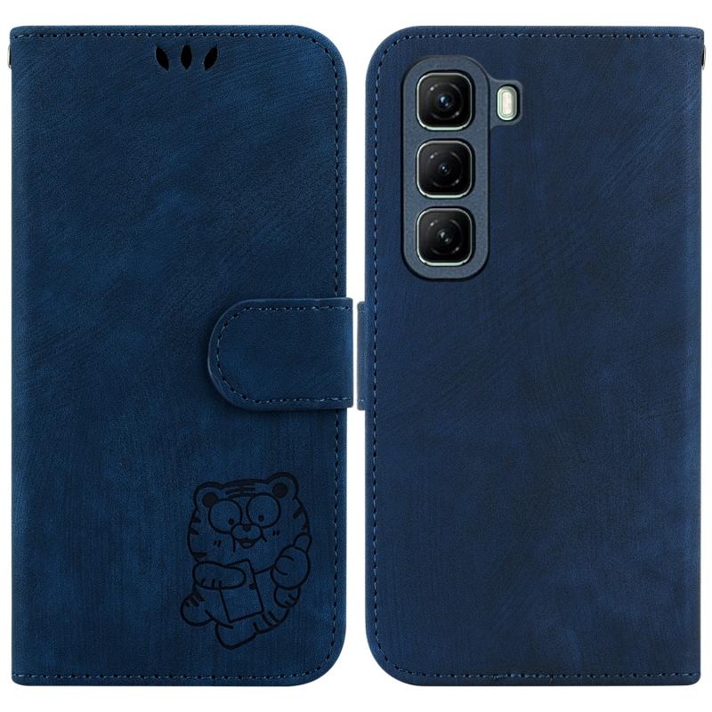 For Infinix Hot 50 4G Little Tiger Embossed Leather Phone Case(Dark Blue)