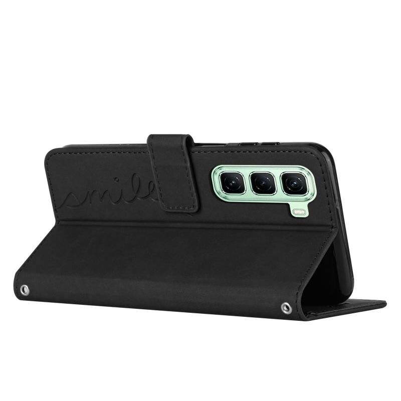 Για Infinix Hot 50 4G δέρμα αίσθηση καρδιάς ανάγλυφη δερμάτινη θήκη τηλεφώνου (μαύρο)