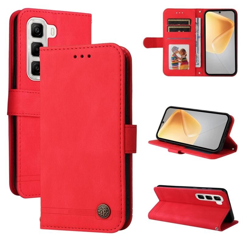 Για το Infinix Hot 50 4G δέρμα αίσθηση ζωής δέντρο μεταλλικό κουμπί δερμάτινη θήκη τηλεφώνου (κόκκινο)