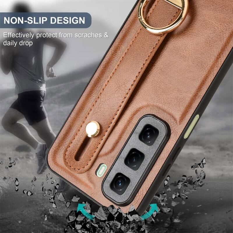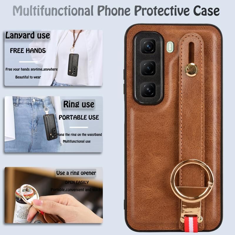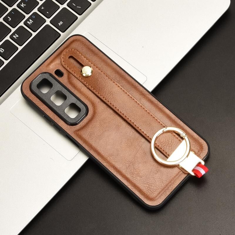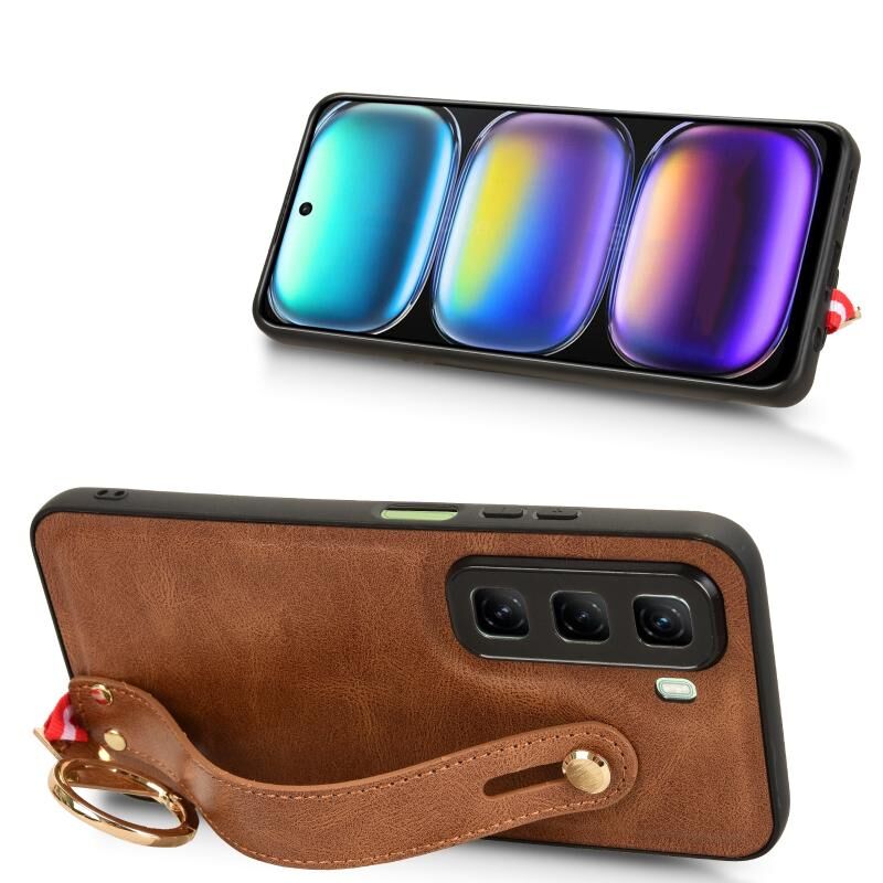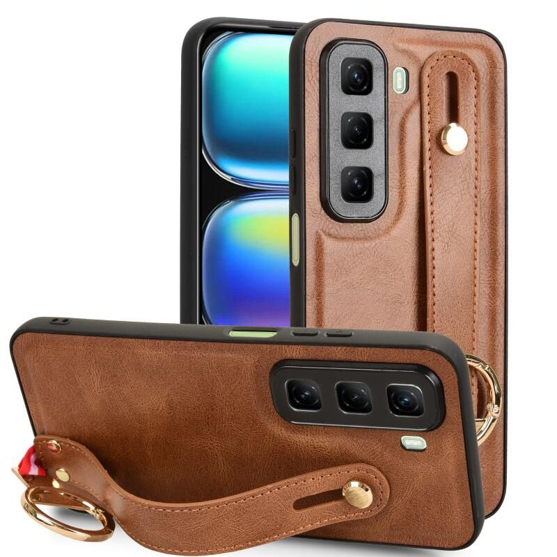 Για Infinix Hot 50 4G Wristband δέρμα πίσω υπόθεση τηλεφώνου (καφέ)