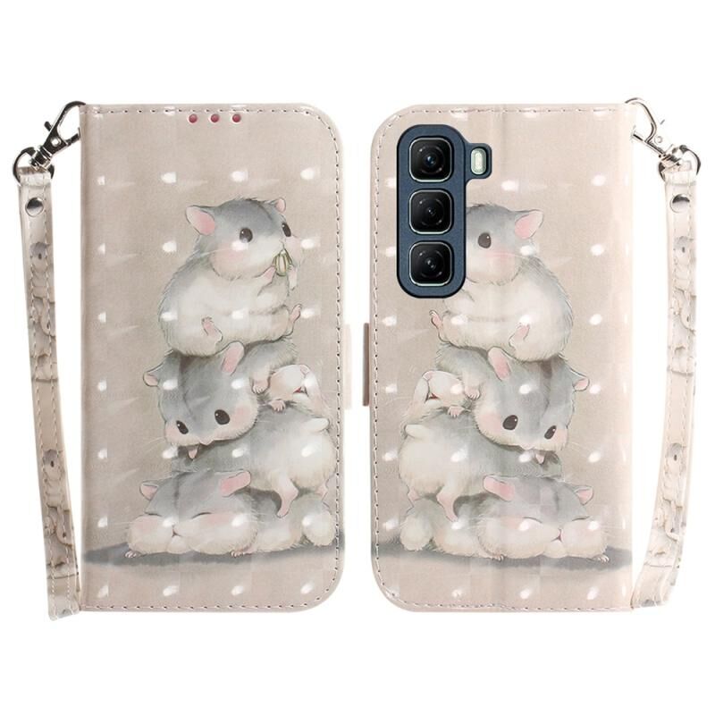 Θήκη τηλεφώνου δερμάτινη, οριζόντια, αναδιπλούμενη, με έγχρωμο 3D σχέδιο (σκίουροι) για Infinix Hot 50 5G.