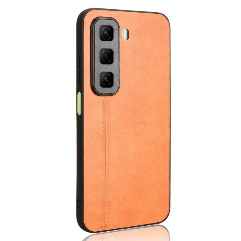 Για Infinix Hot 50 5G αγελάδα μοτίβο ραπτικής κάρτα τσάντα υπόθεση τηλεφώνου (πορτοκαλί)