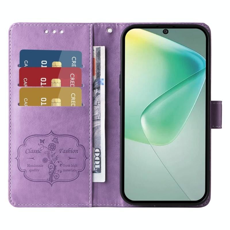 Θήκη τηλεφώνου από δέρμα με ανάγλυφα λουλούδια και πεταλούδες για Infinix Hot 50 5G (Μωβ)