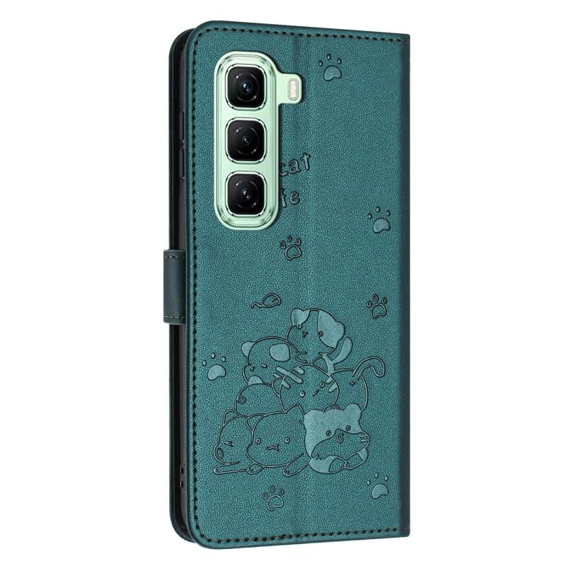 Θήκη δερμάτινη για Infinix Hot 50 5G με ανάγλυφο σχέδιο γατάκι και κορδόνι (Μωβ)