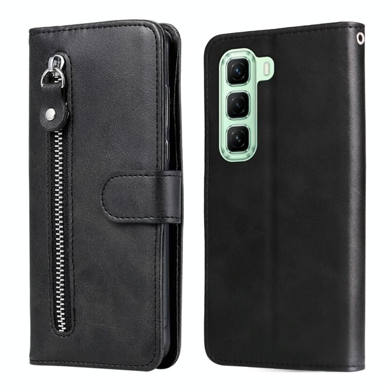 Για Infinix Hot 50 5G Μόδα μοσχάρι υφή φερμουάρ δερμάτινη θήκη τηλεφώνου (μαύρο)
