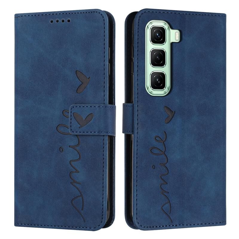 Για Infinix Hot 50 5G δέρμα αίσθηση καρδιάς ανάγλυφη δερμάτινη θήκη τηλεφώνου (μπλε)