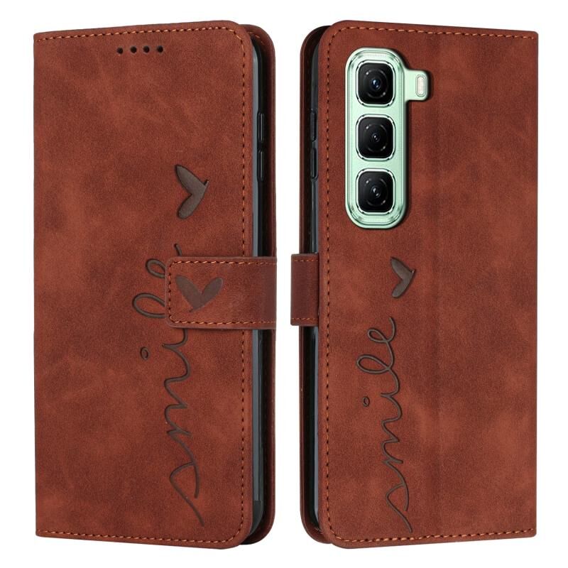 Για Infinix Hot 50 5G δέρμα αίσθηση καρδιάς ανάγλυφη δερμάτινη θήκη τηλεφώνου (καφέ)