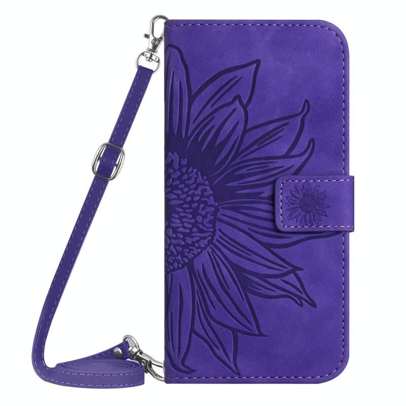 Θήκη τηλεφώνου από δέρμα με σχέδιο λουλουδιού ηλιοτρόπιου ανάγλυφης υφής για Infinix Hot 50 5G, με λουρί (Κόκκινο)