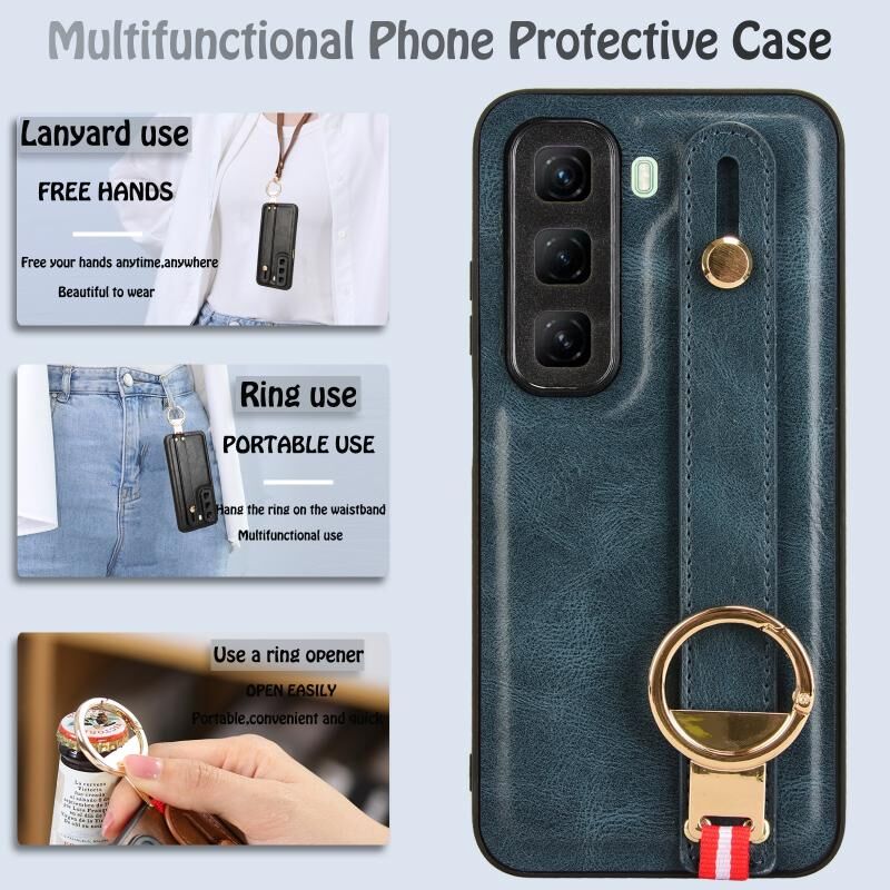 Για Infinix Hot 50 5G Wristband δέρμα πίσω υπόθεση τηλεφώνου (μπλε)